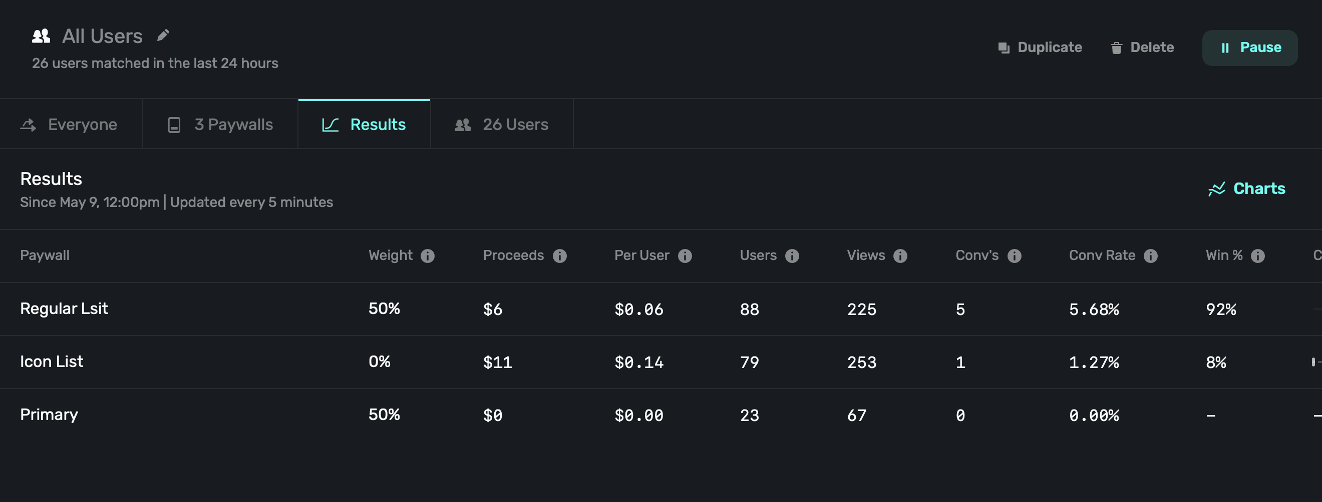 Here, you can see how paywalls are performing for the given audience.