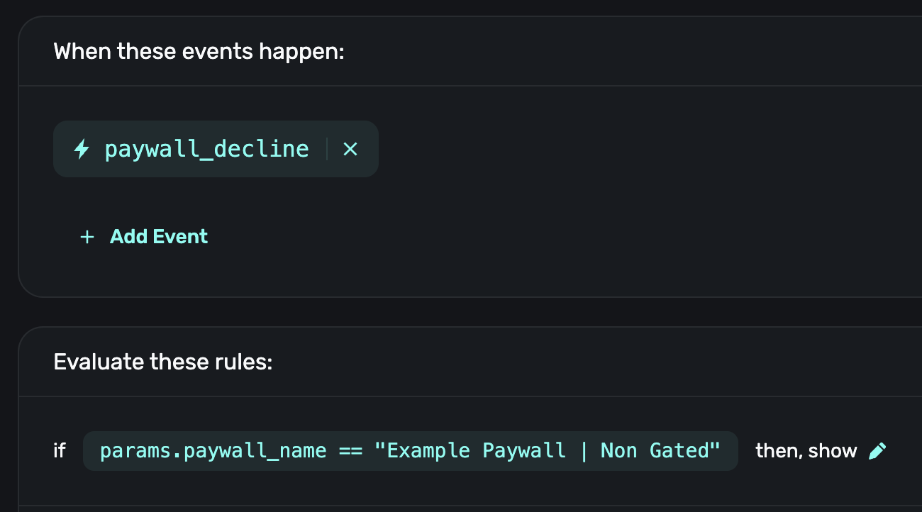You can combine this with rules to show a paywall whenever a survey response is recorded or when the user gives a specific response: